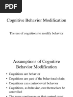 Cognitive behavior modification (cbm) is a therapeutic technique in which clients challenge their internal beliefs and assumptions regarding matters that are upsetting them.